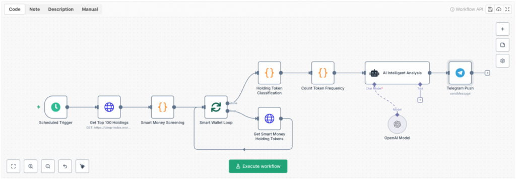 Timed Trigger → Get Holders → Filter Addresses → Batch Query Holdings → Data Analysis → AI Generate Report