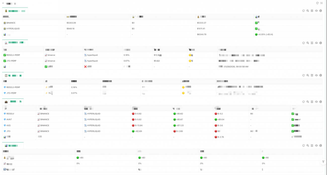 Through these dashboards, you can monitor the strategy’s operational status in real time, including account health, current opportunities, position P&L, and all other key information.